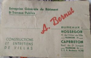Maçon pour Victor Auclair lors de la construction du pont d'Hossegor et construction de bâtiments, villas et logements ouvriers sur Capbreton et Hossegor. La villa la plus connue est la 1ère maison landaise du Président François Mitterrand, bâtie en 1956 par ses fils qui ont repris l'entreprise à son décès. L'architecte était Bernard Durand.